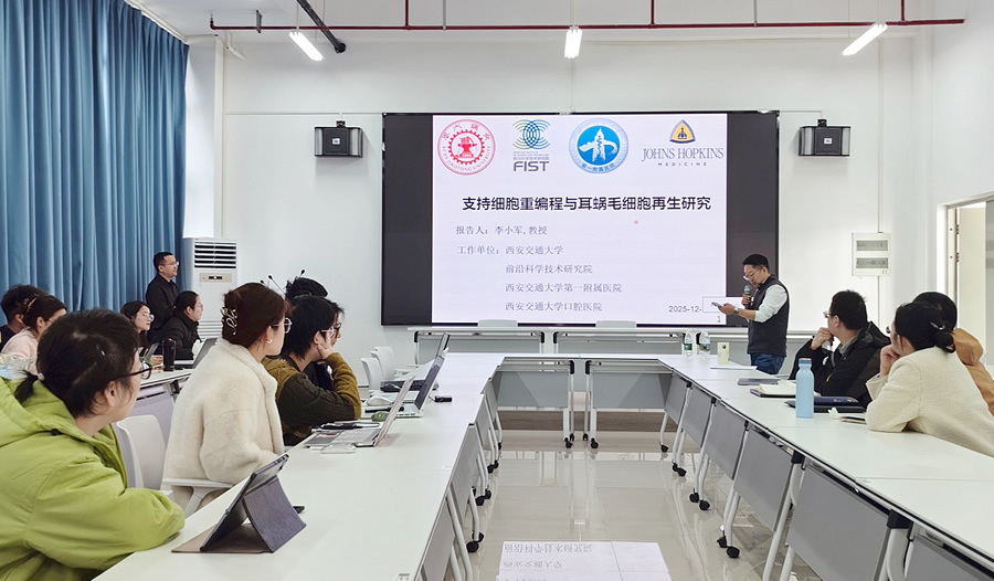 2025年12月11日,西安交通大学教授、博士生导师李小军应邀到访南通大学生命科学学院,并作题为“耳蜗支持细胞重编程及毛细胞再生”的学术报告。报告由刘东教授主持。